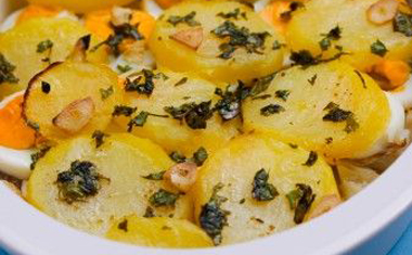 A keddi adásban a hagyományos rakott krumplit varriáljuk át egy picit. Száműzzük a sertészsírt, helyette extra szűz olívaolajat használunk. Főtt krumpli, kolbász, főtt tojás, és párolt zöldségek kerülnek szép sorjában egymás főlé. Tetejére bőven kanalazok sok-sok tejfölt, aztán betoljuk a sütőbe, hogy szép pirosra süljön.