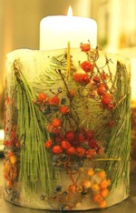 Jéggyertyákat nem nehéz készíteni. Egy nagyobb méretű, üres konzerves doboz közepébe tegyünk egy vastagabb gyertyát, úgy, hogy a vége kilógjon. Köré különböző téli terméseket tehetünk, fenyőágakat, kertben található bogyókat, tobozokat, őszi leveleket, narancs és citrom szeleteket. Öntsük tele az edényt hideg vízzel, majd tegyük be a fagyasztóba egy napra. Ha kőkeménnyé dermedt, csorgassunk forró vizet a doboz külső oldalára, és egy mozdulattal húzzuk ki belőle. Tegyük a jéggyertyát zacskóba és felhasználásig tartsuk a fagyasztó szekrényben. A vendégek érkezése előtt vegyük ki a hűtőből a gyertyát, gyújtsuk meg, majd tegyük ki a bejárati lépcsőre.