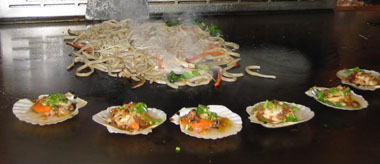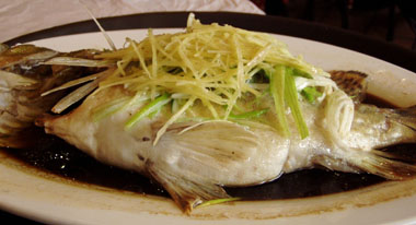 A halat élve, egy zacskóban hozzák ki, el kellett döntenem, megfelel-e, aztán a szorgos szakácsok keze alatt perceken belül ízletes finomsággá változik. Bambuszból készített párolóedényben, gyömbér- és póréhagymacsíkokkal a tetején gőzölik, szójaszósszal locsolgatják, és egészben szervírozzák.