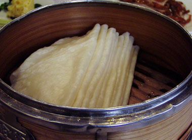 Platnin megsütött lepényekbe töltik,uborka- és póréhagymacsíkokkal, szójaszósszal megcsorgatva, feltekerve, mint egy palacsintát, fogyasztják.