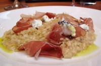 Jöhet a folytatás: citromos kakukkfűrizottó, amit füstölt sonkával és lágy Dorstone-kecskesajttal tálaltak. Hát ez olyan volt, amilyennek az olaszok kitalálták, a rizs nem volt túlfőzve, viszont nem is volt kemény. Telt ízű, de nem is túl tolakodó, a háttérben felsejlett a kakukkfű finom citromos zamata. Jó párosítás a határozott ízű és aromájú kecskesajttal és sonkával.