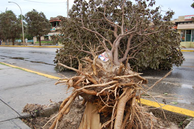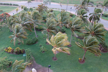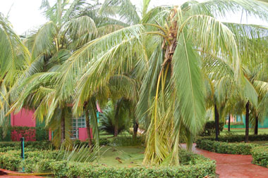 Alig maradt ép levél a fákon, a kókuszpálmák elég jól bírták a vihart.