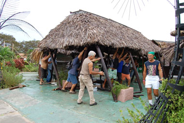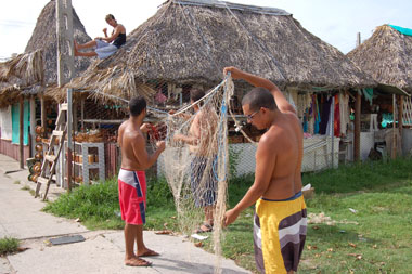 A pálmalevélből készült tetőket halászhálóval fogatták le.