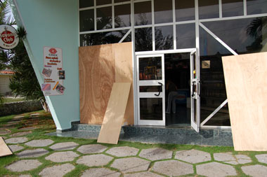 A hatóságok figyelmeztetésére, bedeszkázták az ajtókat, ablakokat. A boltokban szinte mindent elpakoltak, az árukészletet kiürítették.