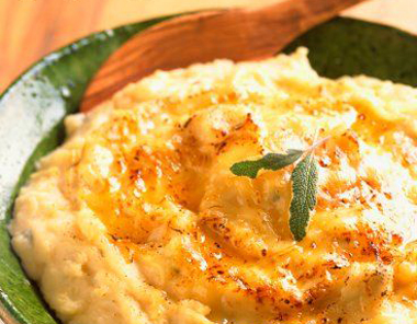 Tálaláskor szeletekre vágott és olívaolajban pirosra sütött fokhagyma szeleteket szórjunk rá. Kitűnő sertéssültek körítésére.