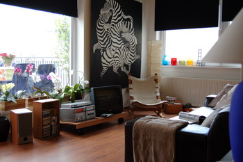 "Bár a nappali pont akkora, amekkora funkcionálisan szükséges, a nagy üvegfelületen át látható óriási terasz jóvoltából mintegy "megnő". A négy Vasarely-zebra képet házigazdánk nagyíttatta és úgy kasírozta fel - tíz éve kíséri otthonról otthonra"