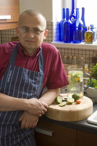 - A lakást is rögtön úgy néztem, lehet-e forgatni benne, mert az én konyhámnak nem csak főzőhelynek kell lennie, hanem alkotóműhelynek is. Mutattál néhány részt a sorozatból, mondhatom, mulatságosak voltak. Az ételek meg...gyönyörűek! - Amióta feltalálták a színes tévét, azóta nekem színesen kell főznöm. Ha töltött csirkemellhez zöldborsót, zöldbabot, zöld spárgát, párolt spenótlevelet és brokkolit adnék, azzal - bár íz ízre jó lehetne - agyonütném a hatást. Én már a köretek válogatásakor színekben gondolkodom. A töltött csirke mellé például egy sárgarépa, némi zöld brokkoli, egy paradicsom, barna sült gomba, hófehér karfiol, és ha egy igazán ütős színt is akarok, ahhoz egy bíbor cékla sem árt. És szép selymes fényű mártás, ami az egészet összekapcsolja.