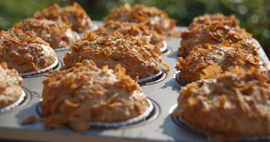 Öntsük egy keverőtálba az olvasztott vajat, majd adjuk hozzá a barnacukrot. Üssük bele a tojásokat, kanalazzuk bele a joghurtot és a mézet, tegyük hozzá a kakukkfűleveleket és a narancs lereszelt héját. Fakanállal, vagy habverővel jól dolgozzuk össze. Egy másik tálba szórjuk a lisztet, tegyük hozzá a reggeliző pelyhet, sót és a sütőport, és egy kanállal keverjük össze. Kis adagokban dolgozzuk a tojásos keverékhez, csak addig keverjük, míg teljesen elvegyülnek az alapanyagok. Béleljünk ki papír kapszulákkal egy 12 darabos muffin sütőt, majd töltsük meg háromnegyedig a kész masszával, és a tetejére szórjunk a reggeliző pehelyből. Tegyük előmelegített sütőbe, és 160 fokon süssük 25-30 percig. Még melegen reggelire vajjal megkenve, kávéval vagy teával fogyasszuk. A muffinhoz elkészítéséhez bármilyen, magas rosttartalmú reggeliző pelyhet használhatunk.