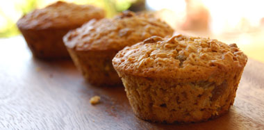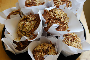 Egy tálba keverjük össze a teljes-kiőrlésű lisztet, barnacukrot, sütőport, sót, őrölt fahéjat. Egy másik tálba szintén keverjünk össze az instant kávét, reszelt sárgarépát, tojásokat, durvára darált diót és az étolajat. A száraz lisztes keveréket keverjük a tojásoshoz, dolgozzuk össze jól, majd töltsük meg háromnegyedig a muffin sütőformákat. Célszerű, ha a formákba papírkapszulákat teszünk sütés előtt, mert így könnyebben ki tudjuk venni belőle, és a mosogatás is könnyebb lesz. 20-25 percig süssük 150-160 fokon.