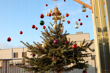 A fát a koronájánál egy vastag köteg zsineggel felakasztottuk a terasz pergolára, úgy hogy a talajtól harminc centire lógjon. A dekorációt pedig melléje kötöztük, hagy lengesse szépen a szellő. Pár órás munkával, megszületett a szakács akasztott karácsonyfája.
