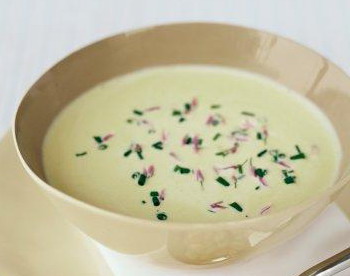 Forrósítsuk fel a vajat egy fazékban, majd tegyük bele a finomra összevágott vöröshagymát. Pároljuk pár percig, és utána adjuk hozzá a kis kockákra összevágott hámozott burgonyát. Öntsünk fel annyi vízzel, hogy kétszeresen ellepje. Daráljunk rá borsot, ízesítsük sóval, leveskockával és kevéske őrölt szerecsendióval. Főzzük körülbelül negyed órán keresztül, majd merülő mixerrel pürésítsük. Tegyük vissza a tűzre, öntsük hozzá a tejszínt, tegyük hozzá az ecetes tormát, majd forraljuk még egyszer össze. Tálaljuk leveses csészékbe, tetejét összevágott metélőhagymával megszórhatjuk. Finomabb a leves, ha a füstöltsonka főzőlevét használjuk az elkészítéséhez.
