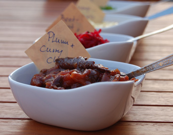 Hozzávalók: 1 kg szilva, 2 diónyi csíkokra felmetélt friss gyömbér, 10 dkg mazsola, 30 dkg zöldparadicsom vagy alma, 3 gerezd fokhagyma, 2 evőkanál curry, 40 dkg barnacukor, 2 teáskanál só, 1.5 dl vörösborecet,50 dkg vöröshagyma, 1 db chili paprika, 2 db egész fahéj, 3 db csillagánizs.