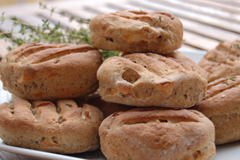 Hozzávalók: 1 kg vörösáfonyás rozskenyérkeverék (a Svéd Finomságok Boltjában megvásárolhatod), 1 evőkanál méz, 3 dl almalé, fél teáskanál kakukkfű, 10 dkg aszalt alma, 2 evőkanál Bertolli olívaolaj.