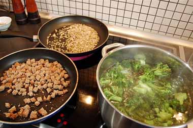 Tegyük egy fazékba a megmosott és rózsáira szedett brokkolit, ha friss brokkolit használunk a gyengébb szárait is beletehetjük. Öntsük fel annyi vízzel, hogy háromnegyedig ellepje.
