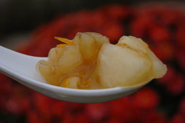 Hozzávalók: 1 kg padlizsán, 20 dkg alma, 1 db narancs, 1 db citrom, 50 dkg befőző cukor 2:1.