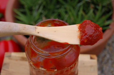 Hozzávalók: 2 kg paradicsompaprika, 1 db chili paprika, 50 dkg befőző cukor (2:1),2dl fehérbor ecet, 2 db citrom leve, 3 teáskanál só.