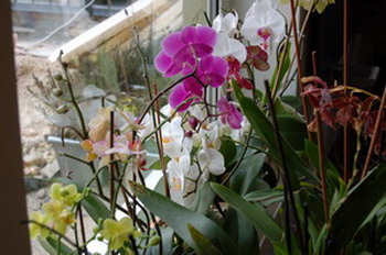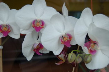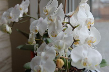 A múlt évben sokáig virágoztak, és a nyár is későn kezdődött el, ezért féltem, hogy nem sok idejük lesz megerősödni kint a szabadban. Az orchidea pompa titka, hogy a virágzás után, amikor már elmúltak a fagyosszentek, ki kell vinni a szabadba, hogy tövei és levelei meg tudjanak erősödni. A töveket árnyékos helyre kell tenni, és gondoskodni kell, hogy állandóan nedves legyen a töve. Az én teraszomon sok minden megtalálható, egyet kivéve, az árnyékos helyet. De megoldottam, a babérbokor tövei közé dugdostam őket, és állandóan permeteztem vízzel. Ősszel, amikor jött az első hideg este behoztam és azonnal a helyükre tettem. Azóta hetente egyszer meglocsolom, és várom a virágzást. Íme, csodáljátok meg ti is!