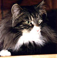 - a norvég erdei macska feje triangular formájú,